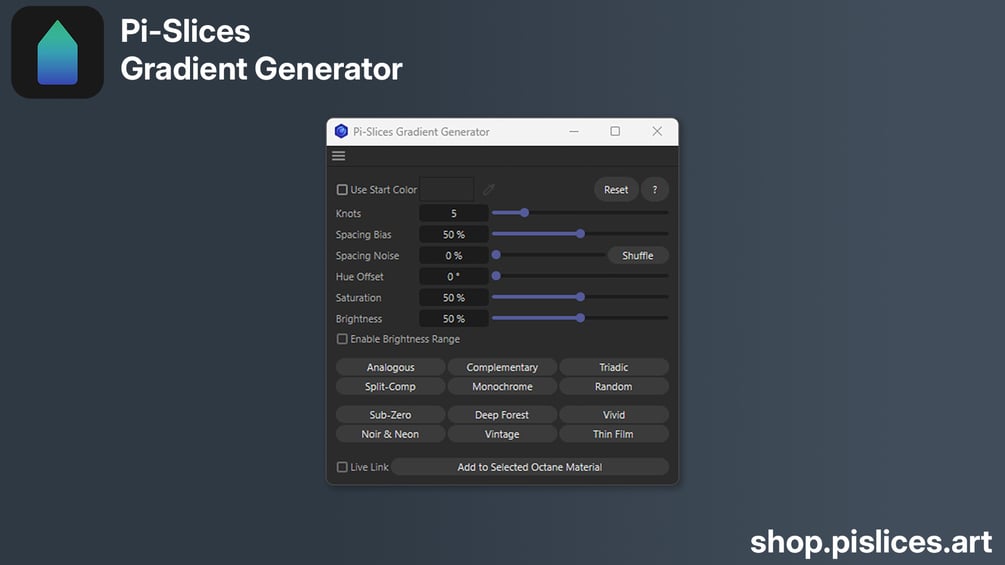 - Octane Live Link: Real-time synchronization between the generated gradient and an Octane Gradient